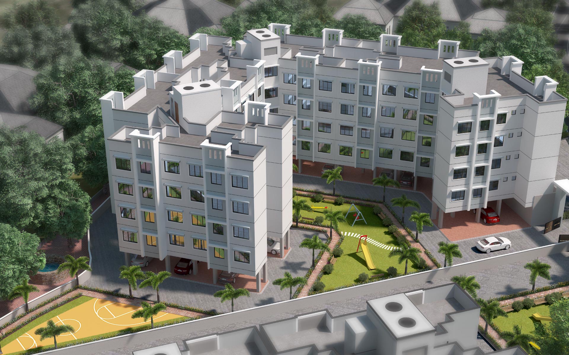 - 5 Residential Buildings of Stilt + 4 & 3 Storey with lift.
